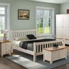 This beautiful eye catching collection boasts clean straight lines, stylish panels and dovetailed drawers.  Enhanced by our modern square metal knob and finished in a contemporary Ivory paint with a light oak top. Also available in dining and living.